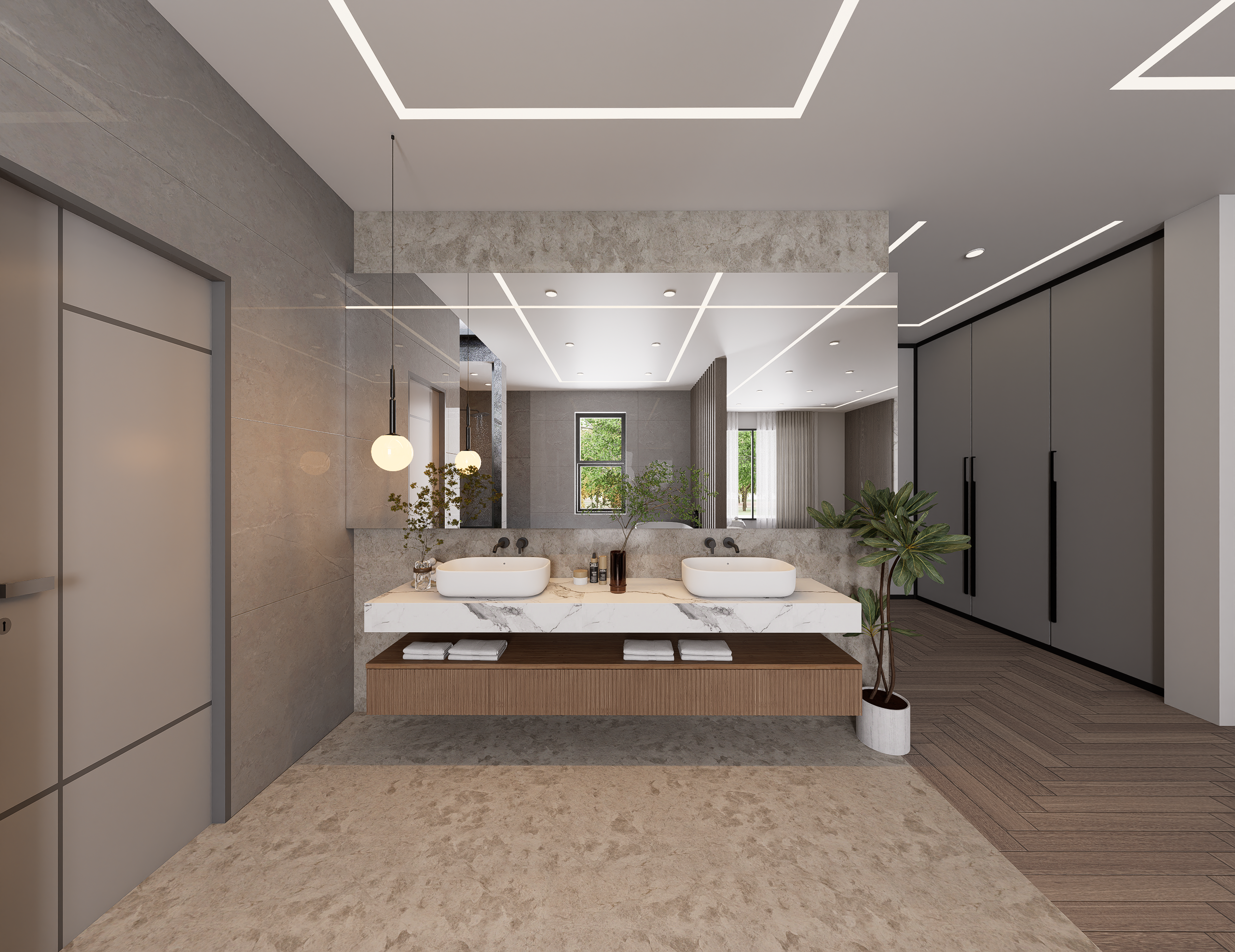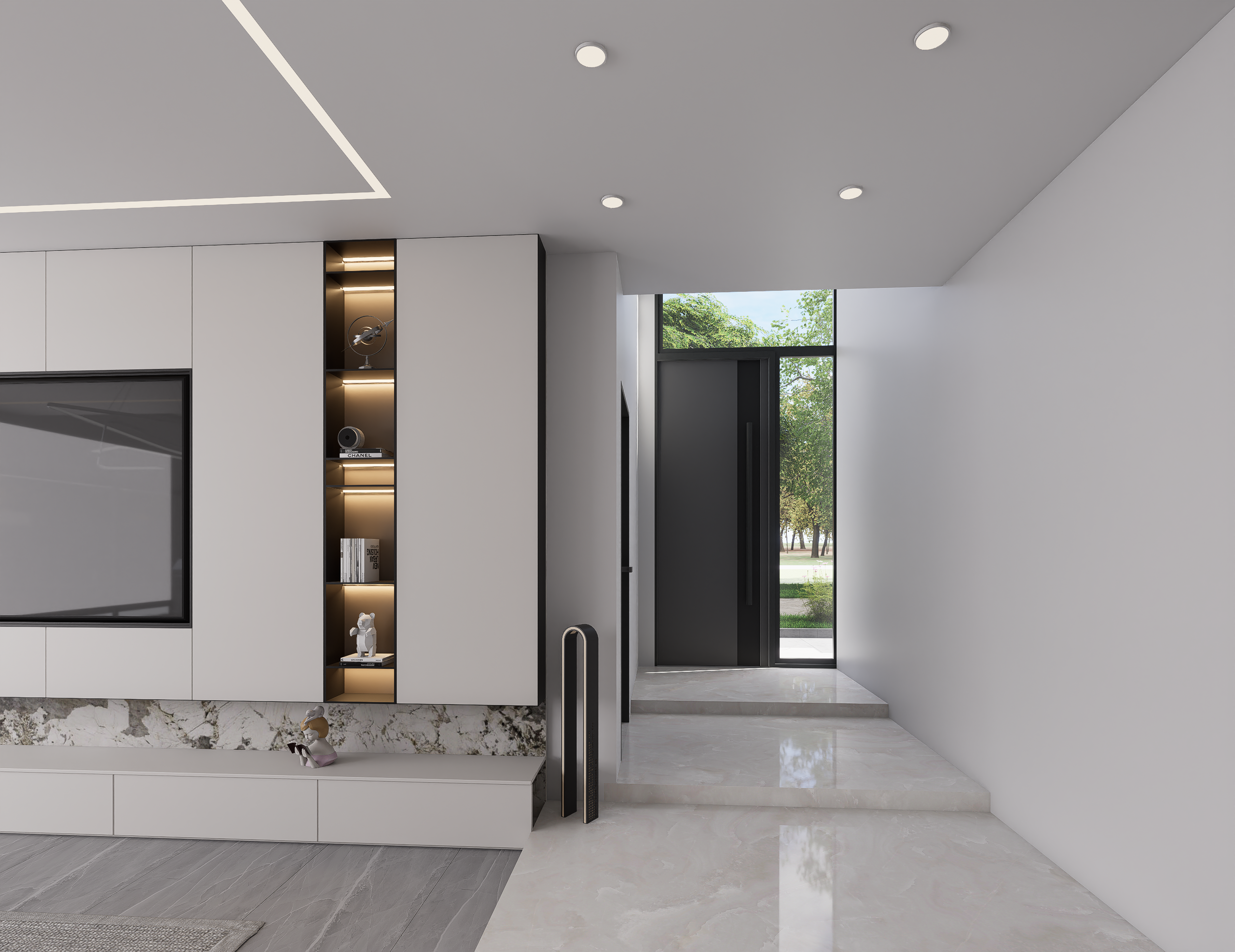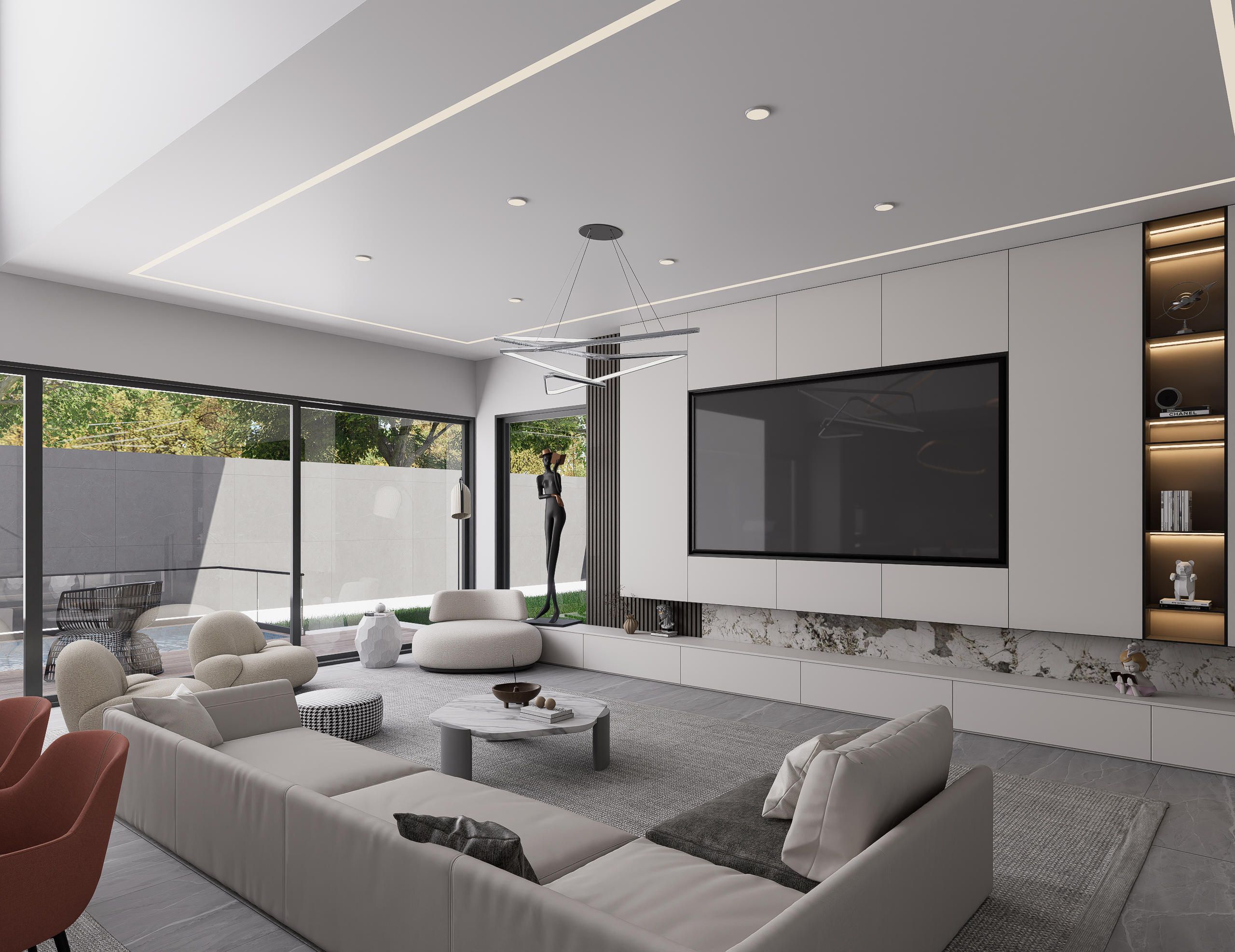 This project is defined by a meticulous blend of neutral palettes, rich textures, and dramatic lighting, culminating in a series of spaces that flow seamlessly from one to the next, promoting both grand entertaining and quiet relaxation.